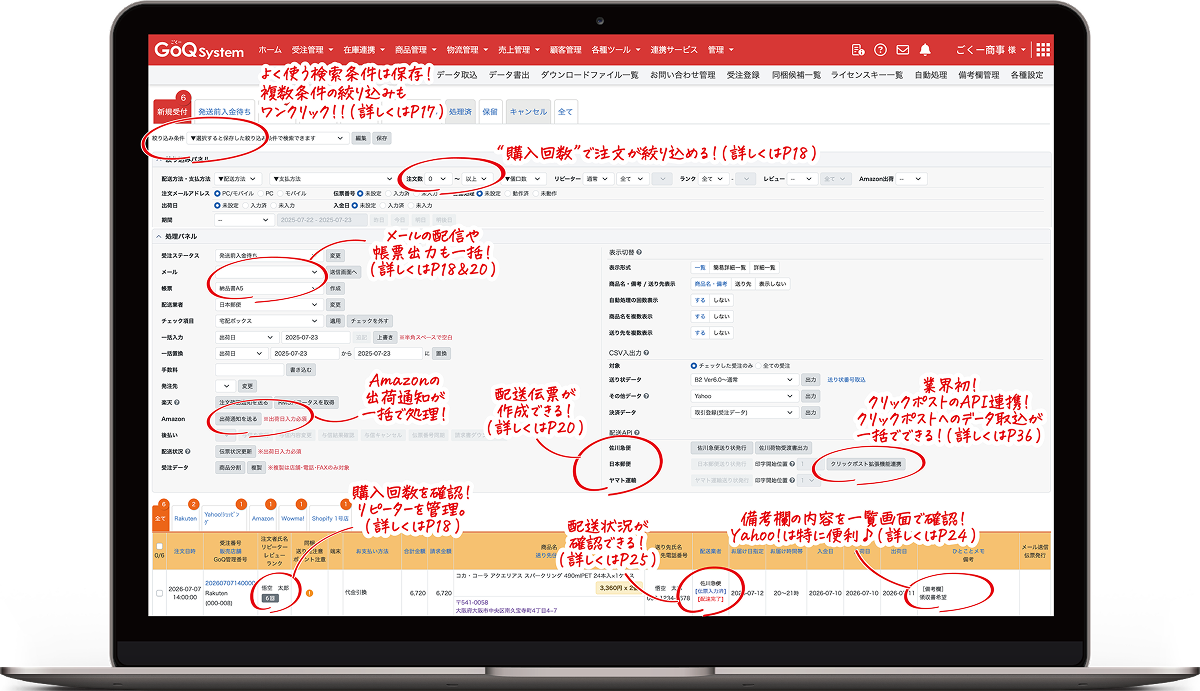 GoQSystemは、複数のネットショップの「受注・商品・在庫・売上」を一元管理できるクラウド型システムです。
