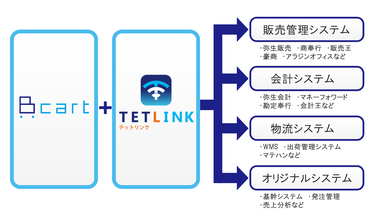 テットリンクは、Bカートのデータを多種多様なシステムと連携させるアプリです。